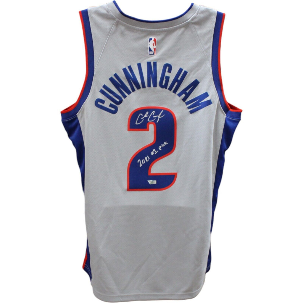 The number in the listing title is just an inventory sku for our records and is not the authentication number. The item pictured is the exact item you will receive, please see photos for condition. This is a Detroit Pistons Nike Grey Swingman Jersey that was personally autographed by Cade Cunningham with "2021 #1 Pick" inscription. Includes a certificate of authenticity from Fanatics Authentic (FAN) and Denver Autographs.
