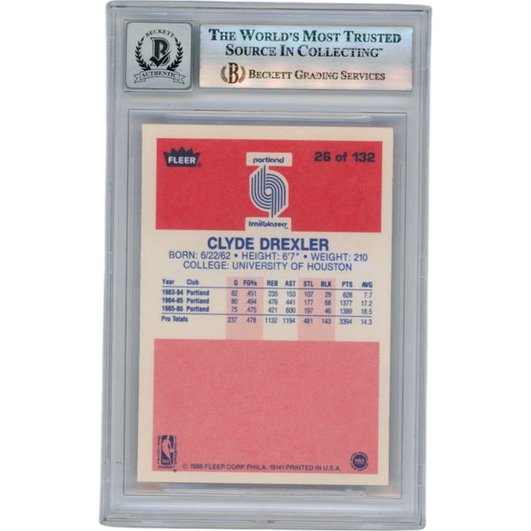 The number in the listing title is just an inventory sku for our records and is not the authentication number. The item pictured is the exact item you will receive, please see photos for condition. This is a Portland Trailblazers Slabbed 1986 Fleer #26 Trading Card that was personally autographed by Clyde Drexler. Includes a certificate of authenticity from Beckett Authentication Services (BAS) and Denver Autographs.FREE SHIPPING within the USA on orders over $10!
