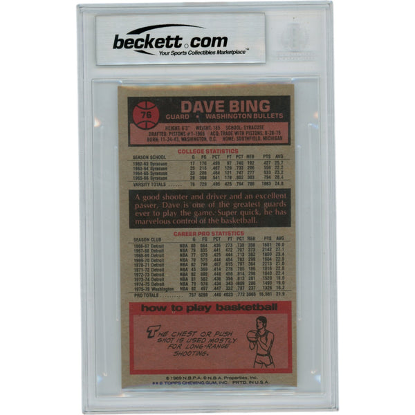 The number in the listing title is just an inventory sku for our records and is not the authentication number. The item pictured is a stock photo unless otherwise noted. This is a Washington Bullets Slabbed 1976-1977 Topps #76 Trading Card that was personally autographed by Dave Bing includes "HOF" inscription. Includes a certificate of authenticity from Beckett Authentication Services (BAS) and Denver Autographs.FREE SHIPPING within the USA on orders over $10!