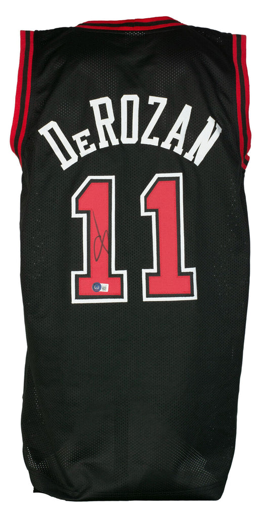 Featured is a DeMar DeRozan signed custom black basketball jersey. This jersey was hand signed by DeMar DeRozan and authenticated by Beckett authentication services. Included with the jersey is an Beckett hologram and certificate of authenticity. This jersey would make a great additional to any sports memorabilia collection. SPECIFICATIONS Autographed By: DeMar DeRozan Team: Chicago Bulls Sport: Basketball Authentication: Beckett Grading Services