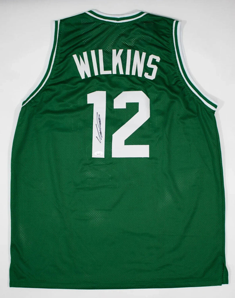 Custom on-court style jersey. Everything sewn on, size XL. Hand-signed by Dominique Wilkins (HOF).The lot / autograph(s) includes an official James Spence Authentication (JSA) hologram and matching COA for authenticity purposes.Authentication: JSA COA