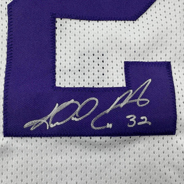 Framed Autographed/Signed Karl Malone 33x42 Utah White Retro Basketball Jersey J