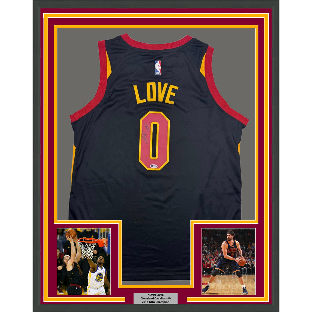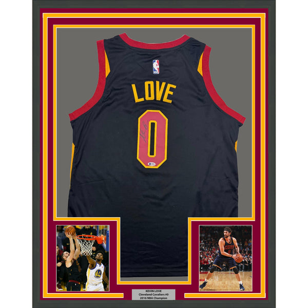 Framed Autographed/Signed Kevin Love 35x39 Cleveland Black Jersey BAS COA Authentic and comes with third party authentication.