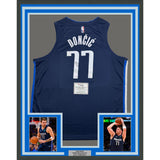 Framed Autographed/Signed Luka Doncic 35x39 Mavericks Blue Jersey Fanatics COA The item is professionally framed and matted with two 5x7 photos, measures 35x39 inches and is ready to be hung in your man cave! Photo and matting requests can be made.