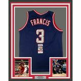 FRAMED Autographed/Signed STEVE FRANCIS 33x42 Houston Blue Jersey JSA COA Auto The item is professionally framed & matted with two 8x10 photos, measures 33"x42" and is ready to be hung in your man cave! NOTE: COA card will be mounted on the back of the frame, not inside it on top of the jersey as seen in the picture.