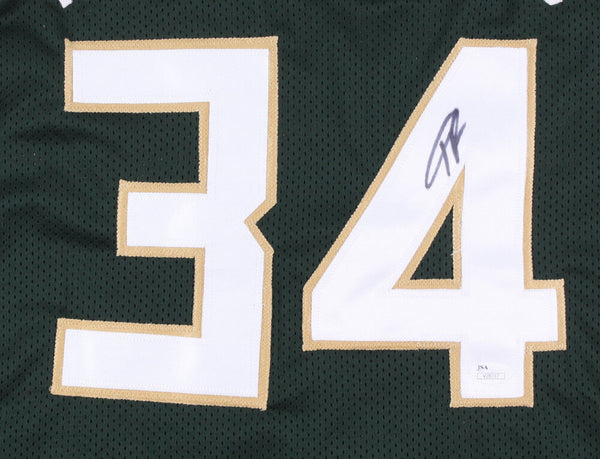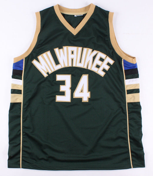 Custom on-court style jersey. Everything is sewn on, size XL. Jersey has been hand-signed in black felt-tip pen by Giannis Antetokounmpo. The lot / autograph(s) includes an official James Spence Authentication (JSA) hologram and matching COA for authenticity purposes.Authentication: JSA COA