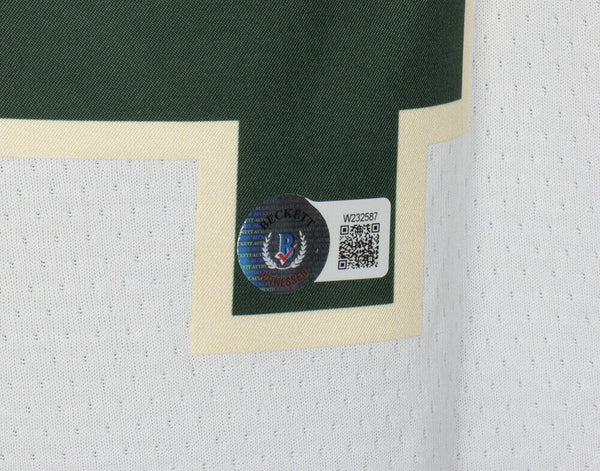 Giannis Greek Freak Antetokounmpo Signed White Bucks Nike Swingman Jersey BAS