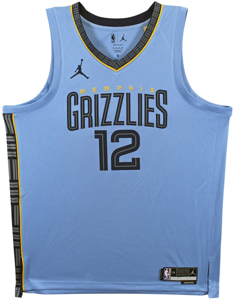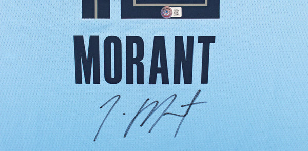 This Autographed Light Blue Nike Swingman Jersey has been Personally Signed by Ja Morant of the Memphis Grizzlies. This item is 100% Authentic to include a hologram by Beckett Authentication Services. This item will come with an affixed Beckett Authentication Services (BAS) authentication sticker, which includes a scannable QR code to verify authenticity. Please note that Beckett no longer provides serial-numbered COA cards, and the attached BAS sticker will serve as the complete authentication for this item. We have multiples of this same item. While the photographs are representative of this item, the size, placement and strength of the signature may vary. Each item is hand signed, therefore, each autograph is unique. This is a X-Large sized Jersey.