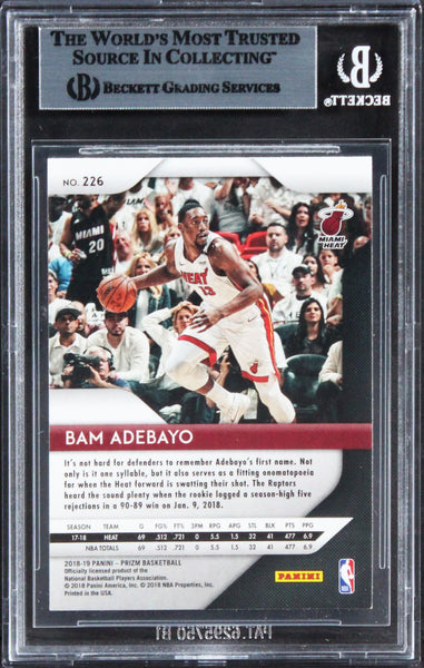This Autographed 2018 Panini Prizm #226 Card has been Personally Signed by Bam Adebayo of the Miami Heat . This item is 100% Authentic, it comes slabbed and authenticated by Beckett Authentication Services. The authenticity can be verified on Beckett Authentication Services website.