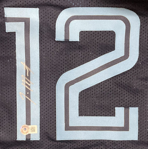 Featured is a Ja Morant signed custom basketball jersey. This jersey has been hand signed by Morant and comes with the Beckett hologram and certificate of authenticity. This jersey features professionally sewn letters and numbers and is size XL. This jersey has no team tags or emblems and is intended as a sports collectible. This jersey would make a great addition to any sports memorabilia collection!. SPECIFICATIONS Autographed By: Ja Morant Team: Memphis Grizzlies Sport: Basketball Authentication: Beckett Grading Services