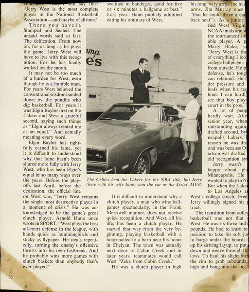 This is a 7x8 Magazine Page Photo that has been hand signed by Jerry West. There are marks on the back of this item as shown. This item has been certified authentic by Beckett Authentication (BAS) and comes with their tamper-proof QR Code hologram.