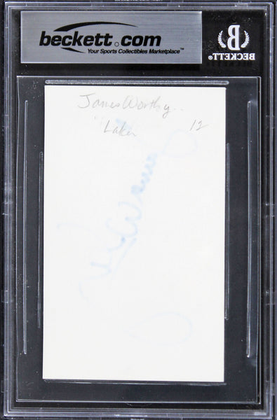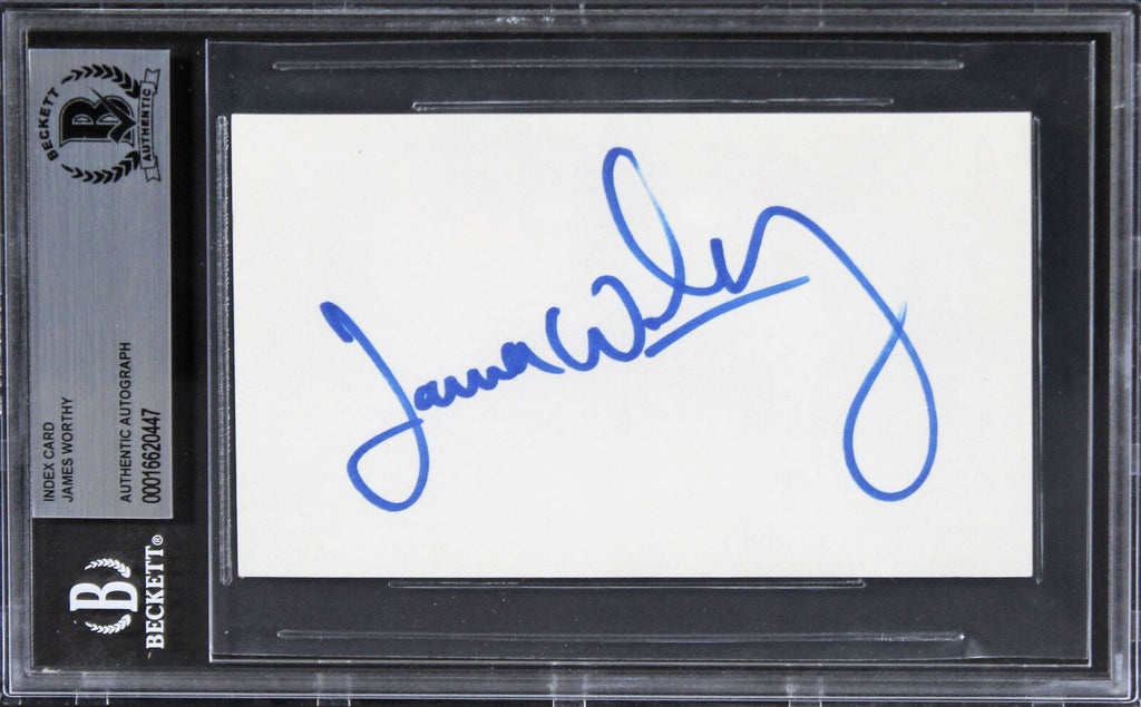 This Autographed 3x5 Index Card has been Personally Signed by James Worthy of the Los Angeles Lakers. This item is 100% Authentic, it comes slabbed and authenticated by Beckett Authentication Services. The authenticity can be verified on Beckett Authentication Services website.