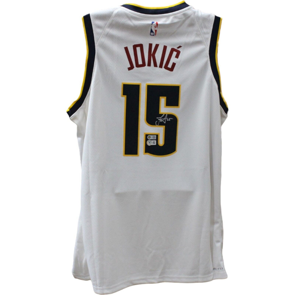 The number in the listing title is just an inventory sku for our records and is not the authentication number. The item pictured is a stock photo unless otherwise noted. This is a Denver Nuggets White Nike Swingman Jersey that was personally autographed by Nikola Jokic. Includes a certificate of authenticity from Beckett Authentication Services (BAS) and Denver Autographs.