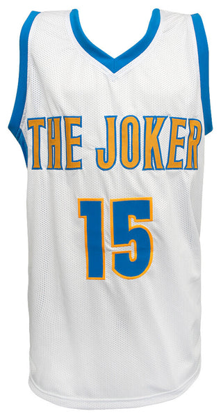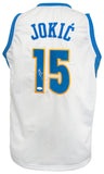 Nikola Jokic signed white 'The Joker' custom basketball jersey. Front of the jersey said 'The Joker'. Item comes with a JSA (James Spence Authentication) tamper evident numbered sticker and matching Certificate of Authenticity which can be verified online. Jersey is size XL.