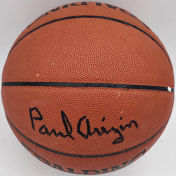 This is an Official NBA Leather Basketball that has been hand signed by Paul Arizin. There are scuffs in the basketball as shown. This item has been certified authentic by JSA and comes with their tamper-proof hologram and matching certificate of authenticity.