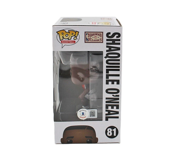 An Orlando Magic Model #81 Funko Pop hand signed by Shaquille O'Neal in white ink. The item and signature are in excellent condition. Shaquille was drafted into the NBA in 1992. Shaquille was a 4x NBA champion, 3x NBA Finals MVP, NBA Most Valuable Player, and he was a 15x NBA All-Star. AUTHENTICATION: The item is accompanied by a Beckett Certificate of Authenticity - Beckett Serial Numbered and Databased Hologram