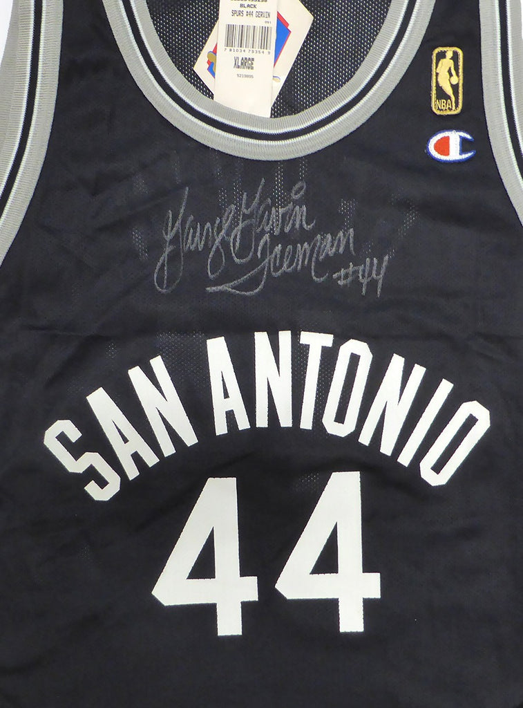 This is a Black Champion San Antonio Spurs Jersey that has been hand signed by George Gervin. This item was inscribed "Iceman #44." This item has been certified authentic by Beckett Authentication (BAS) and comes with their tamper-proof QR Code hologram.