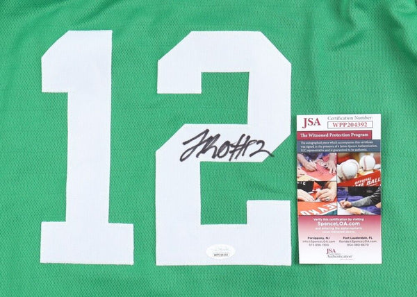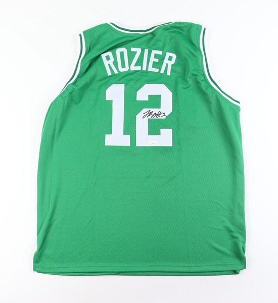 This autographed jersey has been personally hand-signed by Terry Rozier of the Boston Celtics.This autograph is certified by James Spence Authentication's (JSA) Witnessed Protection Program. That means that a JSA representative was present when this item was signed. It comes with the numbered hologram and matching Certificate of Authenticity.Custom on-field style jerseys are a more affordable option for autograph seekers. These jerseys do not have any brand name or tags and are made in the Philippines. They feature stitched on names and numbers and are made to look very similar to the on-field jerseys that the players wear. These custom jerseys are very commonly used in the memorabilia industry.