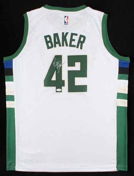 On-court Adidas style jersey. Everything is sewn on, size XL. Hand-signed by Vin Baker. Please note, staining on reverse side of the jersey, see photos for details.The lot / autograph(s) includes an official James Spence Authentication (JSA) hologram and matching COA for authenticity purposes.Authentication: JSA COA