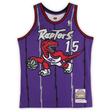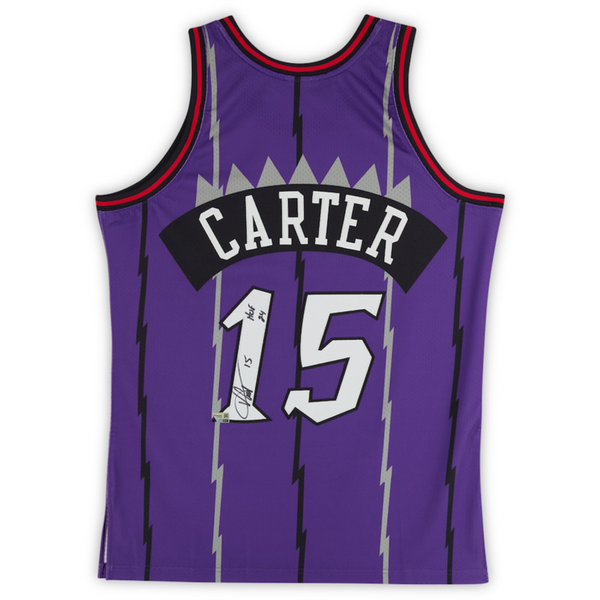 Vince Carter Autographed/Inscribed "HOF 24" Toronto Raptors Mitchell & Ness Purple 1998-99 Authentic Jersey FanaticsThis jersey has been personally hand-signed by Vince Carter with the added inscription "HOF 24." It is officially licensed by the National Basketball Association and comes with an individually numbered, tamper-evident hologram from Fanatics Authentic. To ensure authenticity, the hologram can be reviewed online. This process helps to ensure that the product purchased is authentic and eliminates any possibility of duplication or fraud. Fanatics Authentic Presented by Mounted Memories Includes tamper-evident hologram to ensure authenticity Officially licensed This product is guaranteed authentic and includes a Fanatics Certificate of Authenticity and an accompanying tamper-evident Fanatics Hologram.