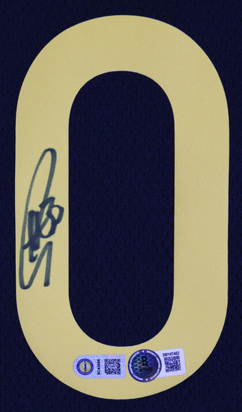 This Autographed Black Jordan Brand Swingman Jersey has been Personally Signed by Stephen Curry of the Golden State Warriors. This item is 100% Authentic to include a hologram by Beckett Authentication Services. This item will come with an affixed Beckett Authentication Services (BAS) authentication sticker, which includes a scannable QR code to verify authenticity. Please note that Beckett no longer provides serial-numbered COA cards, and the attached BAS sticker will serve as the complete authentication for this item. This is a BAS Witnessed Protection Program item which means a Beckett Authentication Service representative was present when this item was being signed. We have multiples of this same item. While the photographs are representative of this item, the size, placement and strength of the signature may vary. Each item is hand signed, therefore, each autograph is unique. Multiple sizes available. Reach out for availability.