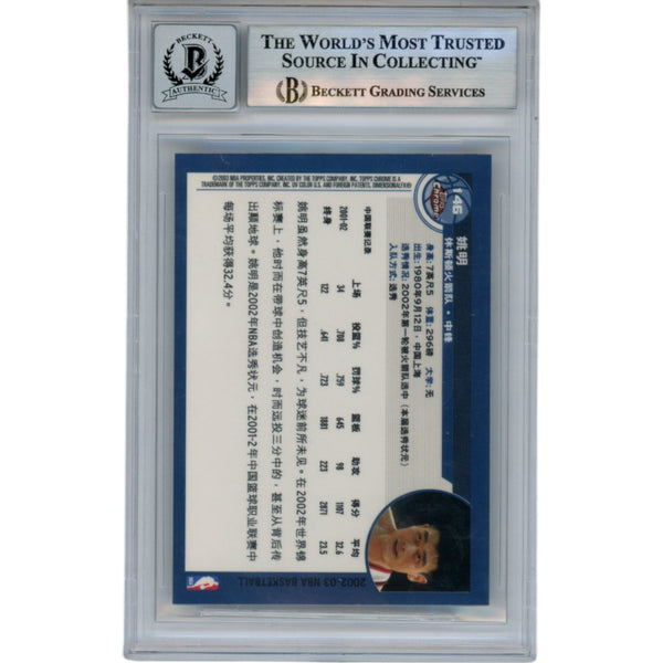 The number in the listing title is just an inventory sku for our records and is not the authentication number. This item pictured is the exact item you will receive, please see photos for condition. This is an Houston Rockets 2002 Topps Chrome #146 Chinese Edition Slabbed Trading Card with a Grade 10 Autograph that was personally autographed by Yao Ming. Includes a certificate of authenticity from Beckett Authentication Services (BAS) and Denver Autographs.FREE SHIPPING within the USA on orders over $10!