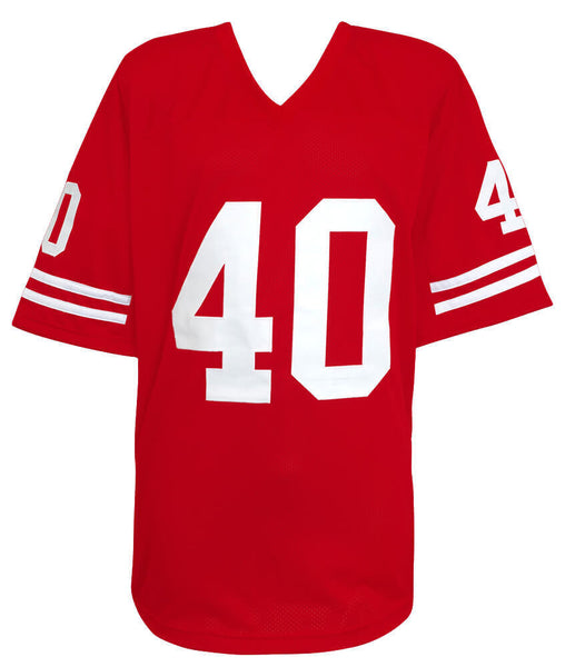 Cory Schlesinger signed red custom college football jersey. Item comes with a Schwartz Sports Memorabilia tamper-proof numbered hologram and Certificate of Authenticity which can be verified online. Jersey is size XL.