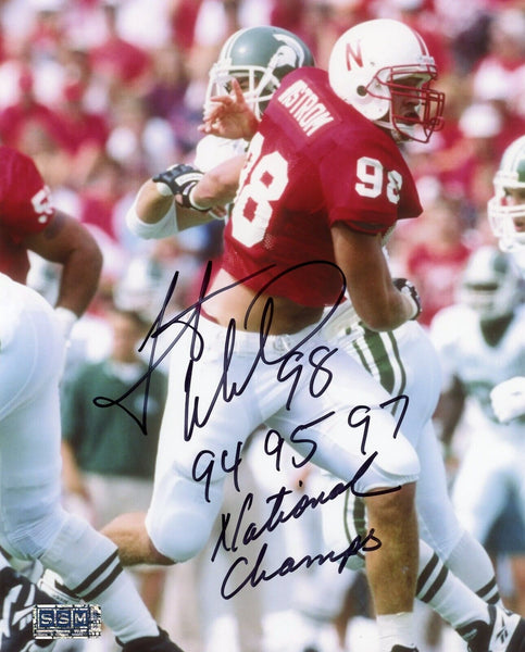Grant Wistrom, former All-American defensive end for the Nebraska Cornhuskers, has hand signed this 8x10 photo at a private signing. This item comes with a certificate of authenticity (COA) from Signature Sports Marketing, one of the leaders in the industry. You will receive a paper COA along with matching serial-numbered holograms.Item pictured may not be the exact item you will receive. It will be similar quality, and we guarantee your satisfaction.