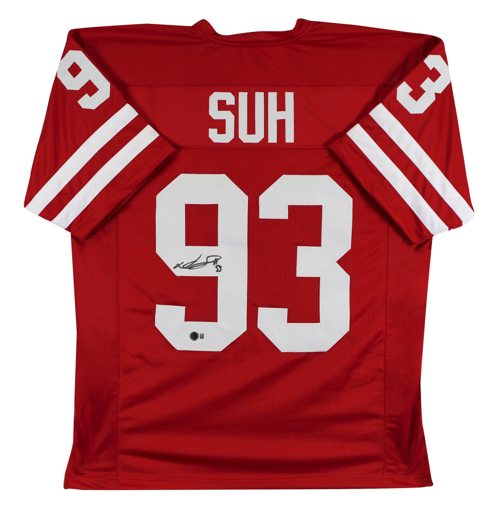This Autographed Red Pro Style Jersey has been Personally Signed by Ndamukong Suh of the Nebraska Cornhuskers. This item is 100% Authentic to include a hologram by Beckett Authentication Services. This item will come with an affixed Beckett Authentication Services (BAS) authentication sticker, which includes a scannable QR code to verify authenticity. Please note that Beckett no longer provides serial-numbered COA cards, and the attached BAS sticker will serve as the complete authentication for this item. This is a BAS Witnessed Protection Program item which means a Beckett Authentication Service representative was present when this item was being signed. We conducted an autograph signing with Ndamukong Suh where multiples of the same item were signed. While the photographs are representative of this item, the size, placement and strength of the signature may vary. Each item is hand signed, therefore, each autograph is unique. This item can be verified through BAS Witnessed. This is a X-Large sized, non-branded, custom-stitched Jersey.