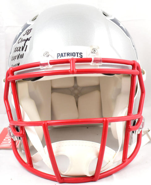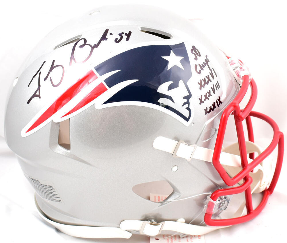 Tedy Bruschi Signed New England Patriots F/S Speed Authentic Helmet w/3x SB Champs-Beckett W Hologram *Black This is a Tedy Bruschi of the New England Patriots hand autographed Riddell Football Full Size Speed Authentic Helmet. Inscribed 3x SB Champs. This item has a Beckett Witnessed Authentication, which comes with a Beckett numbered sticker hologram and a QR code for verification. You can view this item on the Beckett website, it shows when and where the item was signed. It was signed either at a public autograph appearance or a private signing. This is a stock photo of the item. Although you may not receive this exact item, the item you receive is virtually identical, brand new, and in great shape.