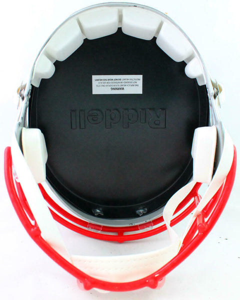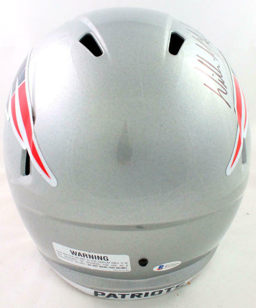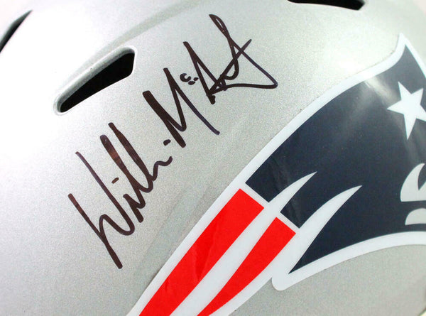 Willie McGinest Autographed New England Patriots Full Size Speed Helmet - Beckett W Auth *Black This is a Hand Autograph of Willie McGinest of the New England Patriots on a Riddell Football Replica Full Size Speed Helmet. This item has a Beckett Witness Authentication, which comes with a Beckett numbered sticker and a matching Certificate of Authenticity. You can view this item on the Beckett website, it shows when and where the item was signed. It was signed either at a public autograph appearance or a private signing. This is a stock photo of the item. Although you may not receive this exact item, the item you receive is virtually identical and brand new in great shape.