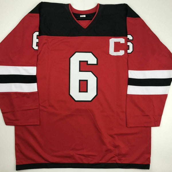 Autographed/Signed ANDY GREENE New Jersey Red Hockey Jersey PSA/DNA COA Auto This is a custom jersey and was not manufactured by or in any manner associated with any professional sports league or manufacturer. This custom jersey carries no professional sports league designation. The item is intended to be an autographed collectible. Reference of team in the title is to allow the purchaser a point of association. The custom jersey displays the name, number and authenticated signature of the player. This item in no way is affiliated with or connected to any professional sports organization. The autograph, as always is guaranteed to be authentic and has been certified as authentic by a third-party, trusted authenticator. Size is XL unless otherwise noted.