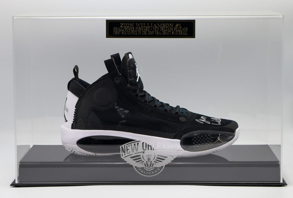 Zion Williamson New Orleans Pelicans Autographed ShoeWith New Orleans Pelicans case and name plate (as is, small crack)