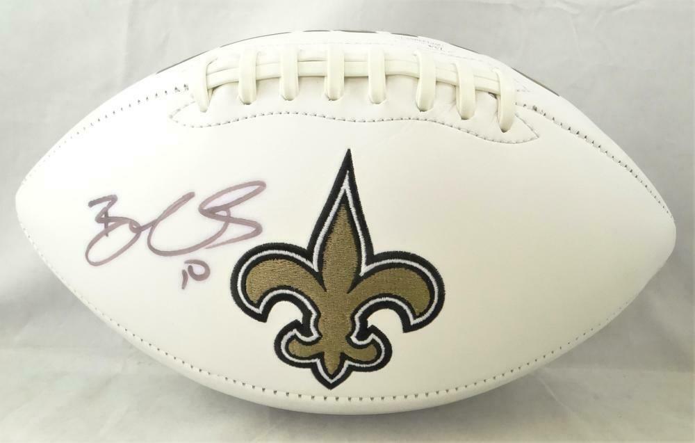 This is a hand autographed football of Brandin Cooks. This is a New Orleans Saints Logo football. This item has a James Spence Witness Protection Authentication, which comes with a JSA numbered sticker and a matching JSA COA. You can view this item on the SpenceLOA website and it shows when and where the item was signed. It was signed either at a public autograph appearance or a Private Signing. This is a stock photo of the item. Although you may not receive this exact item, the item you receive is virtually identical and brand new in great shape. This is a hand autographed football of Brandin Cooks. This is a New Orleans Saints Logo football. This item has a James Spence Witness Protection Authentication, which comes with a JSA numbered sticker and a matching JSA COA. You can view this item on the SpenceLOA website and it shows when and where the item was signed. It was signed either at a public autograph appearance or a Private Signing. This is a stock photo of the item. Although you may not receive this exact item, the item you receive is virtually identical and brand new in great shape.