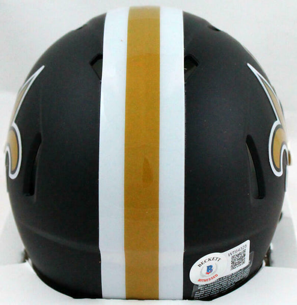 Darren Sproles Autographed New Orleans Saints Flat Black Speed Mini Helmet- Beckett W Hologram *Gold This is a Darren Sproles of the New Orleans Saints hand autographed Riddell Football Flat Black Speed Mini Helmet. This item has a Beckett Witnessed Authentication, which comes with a numbered hologram and a QR code for verification. You can view this item on the Beckett website and it shows when and where the item was signed. It was signed either at a public autograph appearance or a private signing. This is a stock photo of the item. Although you may not receive this exact item, the item you receive is virtually identical, brand new, and in great shape.