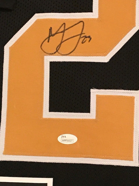 Custom Framed Marshon Lattimore hand signed New Orleans Saints jersey.JSA Hologram and COA(#WP56027)The authentication is from JSA. This signature is not authenticated by opinion but it is WITNESSED by a representative of JSA! 100% AUTHENTIC!!! The jersey has fully stitched numbers on the front and back. It is a great item and a must for all great sports fans!This item is professionally framed, it measures 32"x40" inside , 42"x34" outside , using UV protective Acrylic glass for safe keeping and safe transport, team color matting, black moulding and hanging hooks on the back. All additional items in frame seen in pictures included. 100% ready to hang in your fan cave.