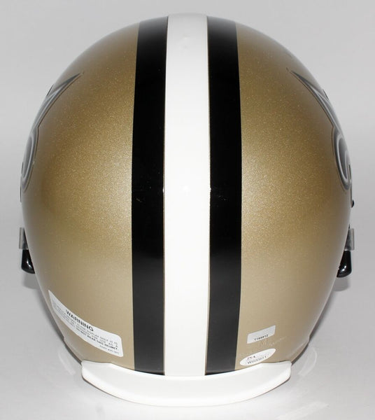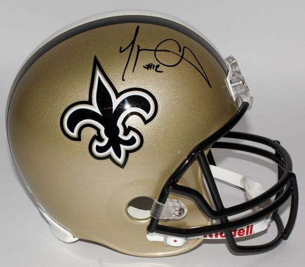 Riddell Saints full-size replica helmet hand-signed in black felt-tip pen by Marques Colston (Saints). The autograph includes an official James Spence Authentication (JSA) hologram and matching COA for authenticity purposes. The signing of this item was witnessed by JSA.Authentication: JSA COA