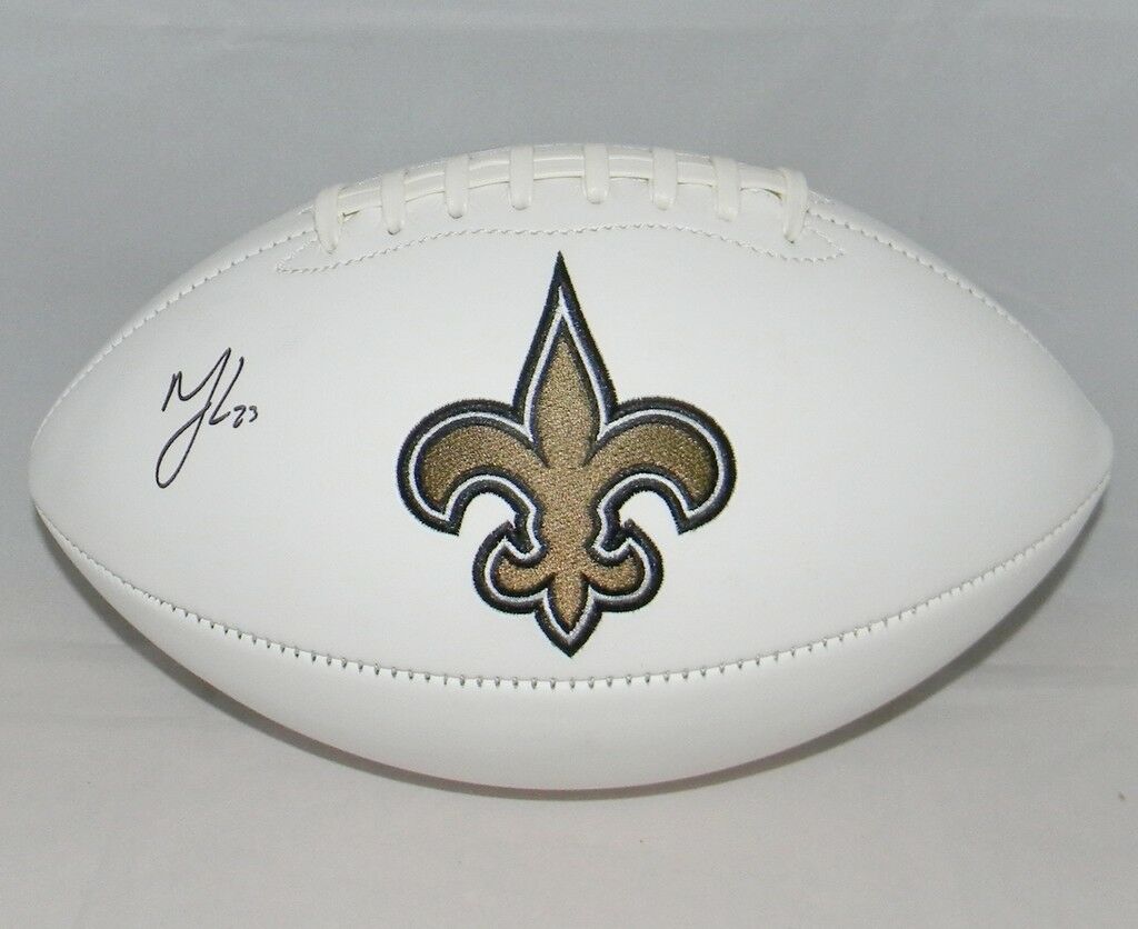 MARSHON LATTIMORE SIGNED AUTOGRAPHED NEW ORLEANS SAINTS WHITE LOGO FOOTBALL JSA