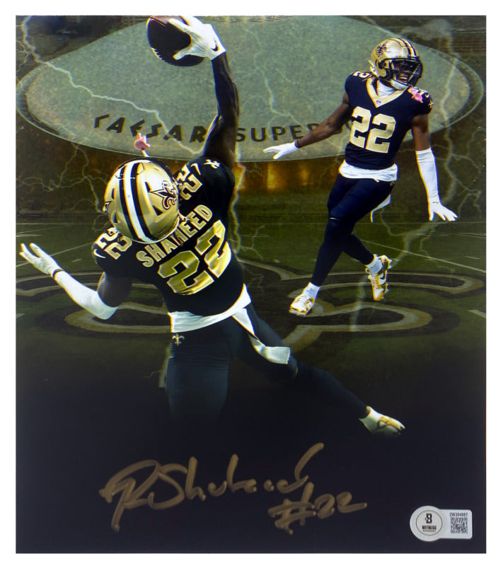 Rashid Shaheed Autographed "Saints Collage" New Orleans Saints 8" x 10" Photograph BeckettThis 8" x 10" photograph has been hand signed by Rashid Shaheed, wide receiver for the New Orleans Saints. It comes with an individually numbered, tamper-evident hologram from Beckett Authentic. To ensure authenticity, the hologram can be reviewed online. This process helps to ensure that the product purchased is authentic and eliminates any possibility of duplication or fraud.Rashid Shaheed is the newest exclusive athlete to the Super Sports Center family.