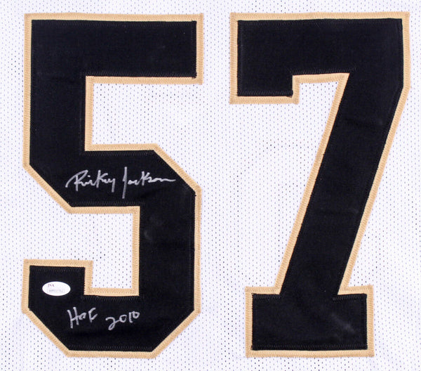 Custom on-field style jersey, everything is sewn on, size XL. Hand-signed and inscribed in silver paint pen by Ricky Jackson. (HOF) The lot / autograph(s) includes an official James Spence Authentication (JSA) hologram and matching COA for authenticity purposes. The signing of this item was witnessed by JSA.Authentication: JSA COA