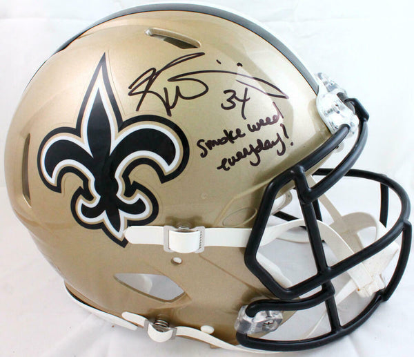 Ricky Williams Autographed New Orleans Saints F/S Speed Authentic Helmet w/SWED-Beckett Hologram This is a hand autograph of Ricky Williams of the New Orleans Saints on a Riddell Football Full Size Speed Authentic Helmet. Inscribed Smoke Weed Everyday. This item has a Beckett Authentication, which comes with a numbered sticker hologram and a generic Beckett Certificate of Authenticity. It was signed either at a public autograph appearance or a private signing. This is a stock photo of the item. Although you may not receive this exact item, the item you receive is virtually identical and brand new in great shape.
