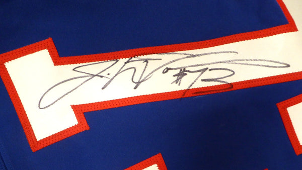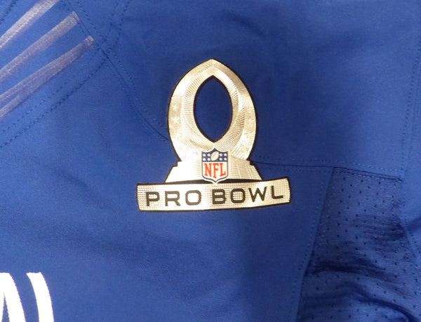 This is a Nike Game Issued Pro Bowl Jersey that has been hand signed by Jahri Evans. This is a Game Issued 2013 Pro Bowl jersey celebrating the 2012 season. The jersey is a size 60. This item has been certified authentic by Beckett Authentication (BAS) and comes with their tamper-proof sticker. Beckett Authentication has recently changed their physical certificate card policy where they no longer match their tamper-proof sticker with a physical certificate. If the item features a Beckett Authenticated QR Code, the item does NOT come with a matching certificate. The tamper-proof sticker holds the value in the authentication process while the certificate does not. A certificate can be printed on Beckett's website for the matching authentication number.