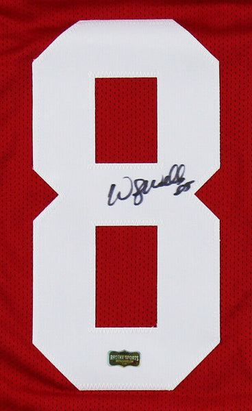 A San Francisco Red Custom Jersey hand signed by Wesley Walls. The item and signature are in excellent condition. Wesley is a retired NFL tight end, who played 14 seasons in his professional career. 5x Pro Bowler, 4x All-Pro, Super Bowl XXIV Champion, and a College Football Hall of Fame inductee. AUTHENTICATION: The item is accompanied by a Certificate of Authenticity - Serial Numbered and Databased Hologram Picture of Wesley from the signing.