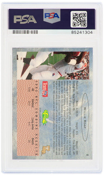 Willie Roaf signed 1993 Classic football rookie trading card #8 with 'HOF 2012' inscription. The card has been authenticated and encapsulated by PSA/DNA and the number can be verified online.
