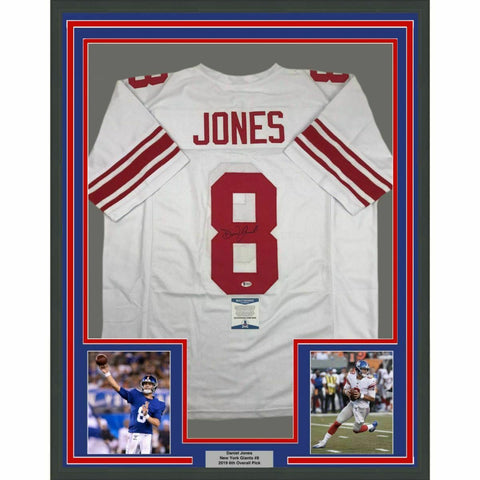 FRAMED Autographed/Signed DANIEL JONES 33x42 New York White Jersey Beckett COA