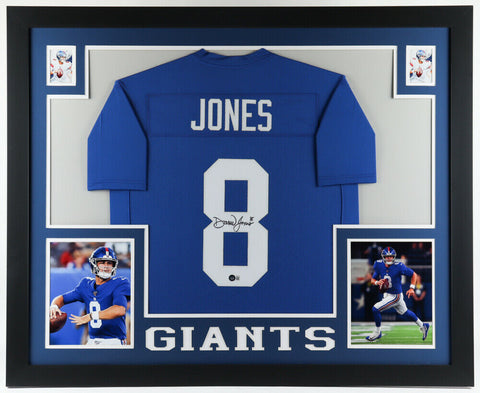 Daniel Jones Signed New York Giants 35x43 Framed Blue Jersey (Beckett Hologram)