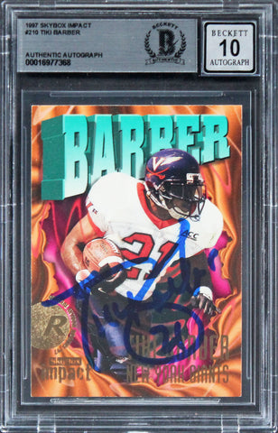 Giants Tiki Barber Signed 1997 Skybox Impact #210 Card Auto 10! BAS Slabbed