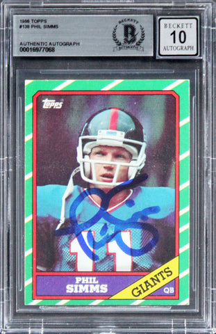 Giants Phil Simms Signed 1986 Topps #138 Card Auto Graded 10! BAS Slabbed