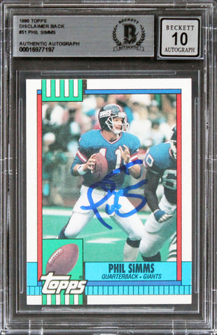 Giants Phil Simms Signed 1990 Topps Disclaimer Back #51 Card Auto 10 BAS Slabbed