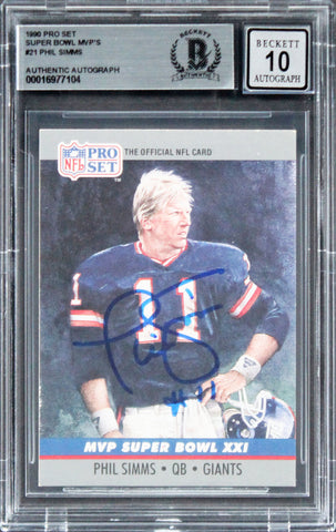 Giants Phil Simms Signed 1990 Pro Set Super Bowl MVP's #21 Card Auto 10 BAS Slab